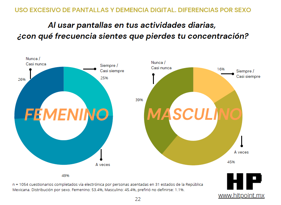 De manera notable, las mujeres y jóvenes mexicanos de 19 a 35 años tienden a resentir con mayor frecuencia los efectos más nocivos del uso excesivo de pantallas y la «demencia digital», un término que sintetiza las afectaciones mentales por el uso continuo y descontrolado de los aparatos conectados a internet.