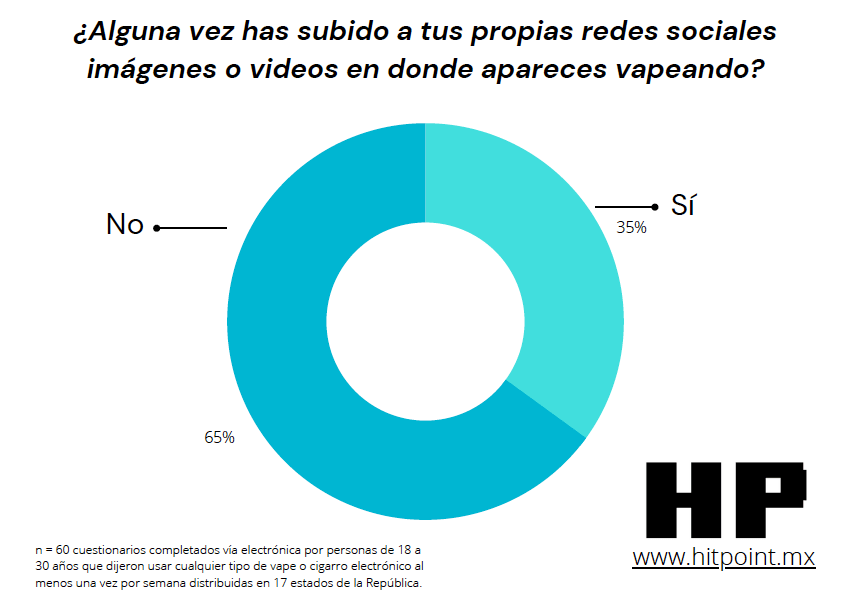De entrada, el 35% nuestros encuestados dijo que han subido a sus propias redes sociales imágenes o videos en donde aparecen vapeando.